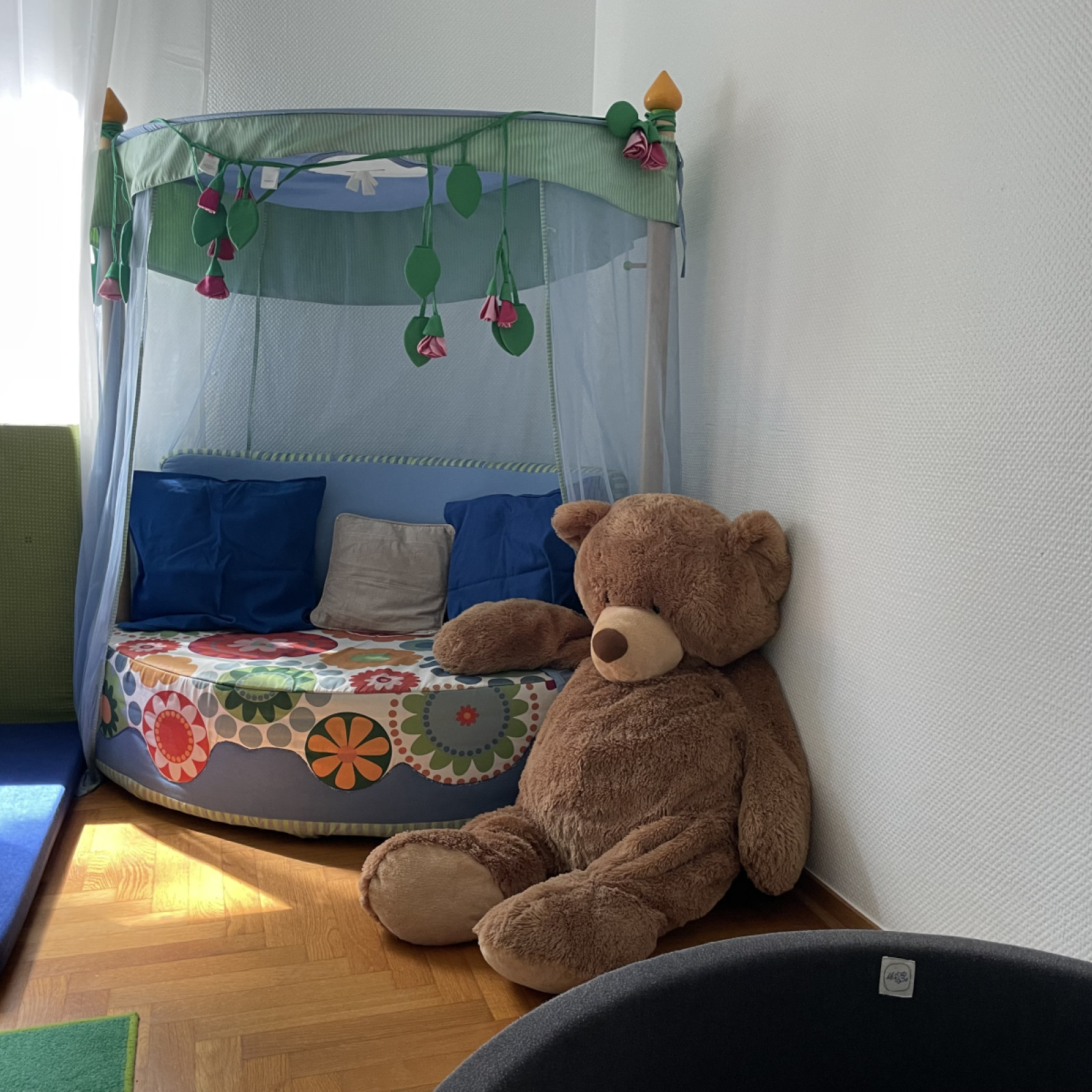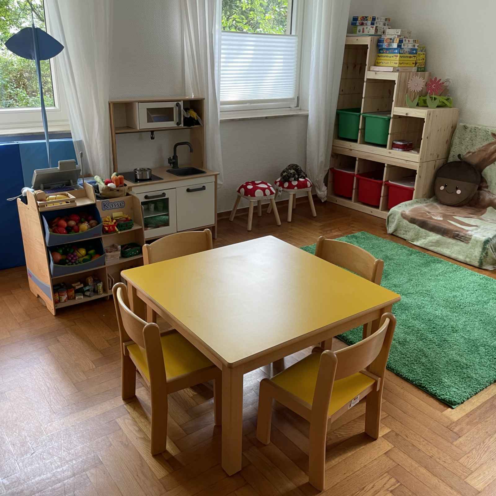 Die Räume meiner Kindertagespflege bieten den Kindern viel Platz zum Toben, Spielen und Schlafen. Es stehen 2 liebevoll eingerichtete Räume für vielfältige Entdeckungen bereit. Durch die kindgerechte Ausstattung fühlen wir uns hier jeden Tag wohl. Sicherheit ist beim Spielen wichtig, und so sind die Räume mit verschiedenen Features ausgestattet, die unbekümmertes Spielen ermöglichen.